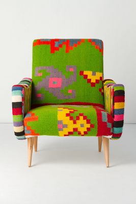 About once a week I go through all my "go-to" online shops and see what they have for new arrivals. Last week I saw these on Anthropologie- along with about 1,000 other things i want- and I have to say that I am strangely attracted to them. I think that it is the bright colors that initially catch my eye but then I also love the kilim used to cover the chairs. These chairs would be fantastic in my new house that we are going to be looking for this weekend :) Happy Friday!